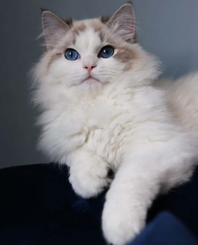 Zobaczyłam ją na zdjęciach, gdy miała zaledwie 4 tygodnie i już wiedziałam, że zrobię wszystko, by zamieszkała w naszym domku. Rozmruczana, chętna do zabawy i czekająca z brzuszkiem do góry na miziani. Ideał Ragdola. Uwielbiam w niej wszystko!